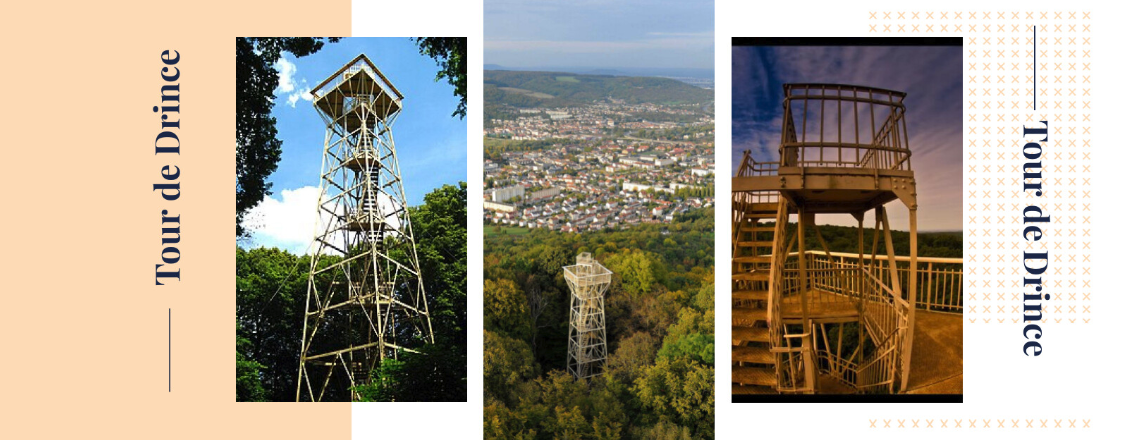 La Tour de Drince, une imposante tour d'observation en structure métallique, se dresse majestueusement à une altitude de 390 mètres, surplombant la côte qui porte son nom, située dans la commune française de Rombas, en Moselle. Cette tour, qui s'élève à une hauteur impressionnante de 25 mètres, offre non seulement une vue panoramique spectaculaire, mais elle revêt également une importance particulière en tant qu'étape clé sur le célèbre sentier de randonnée international GR5. De plus, elle marque la limite géographique avec le ban communal de Pierrevillers, ajoutant ainsi à son charme et à son attrait pour les amateurs de plein air et les randonneurs en quête d'aventures pittoresques.