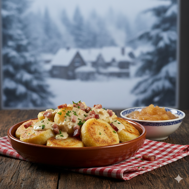 Les authentiques quenelles de pommes de terre à la crème et aux lardons